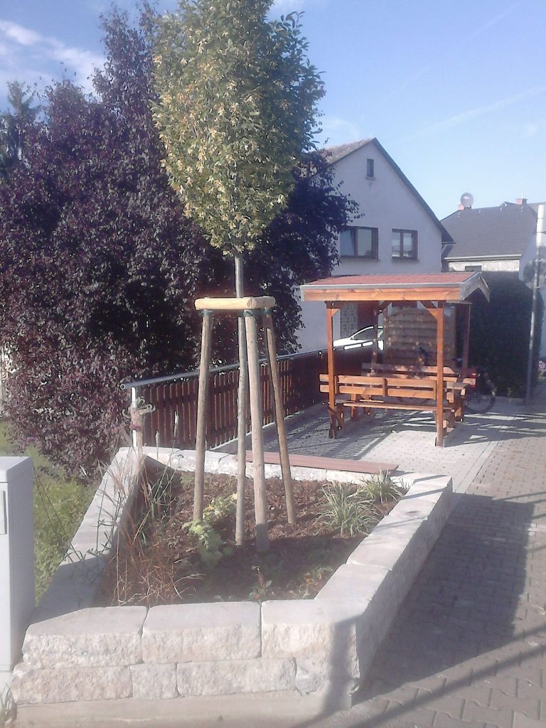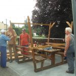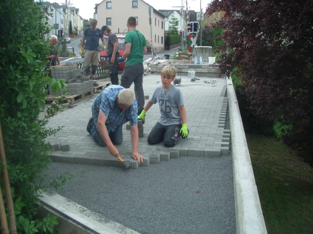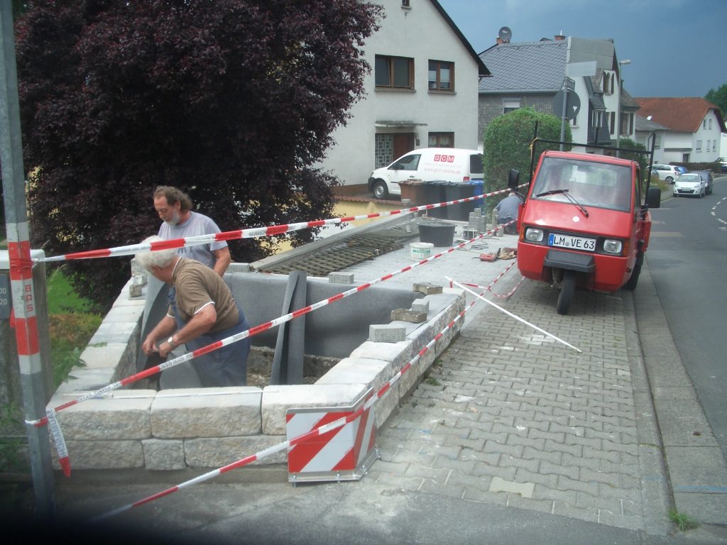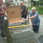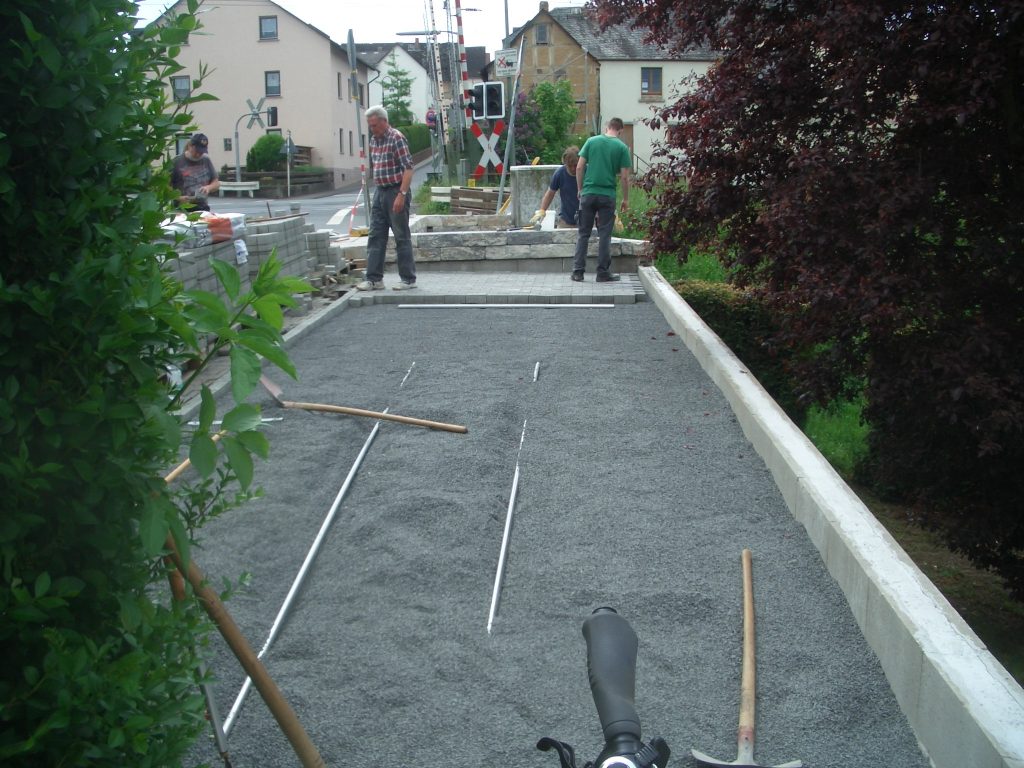 Fortgang der Arbeiten an der neu zu gestaltenden Sitzgruppe am Bahnübergang